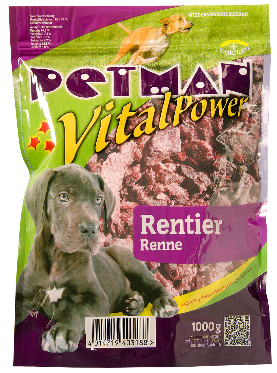 Zusammensetzung: Muskelfleisch vom Ren 97 %, Calciumcarbonat
