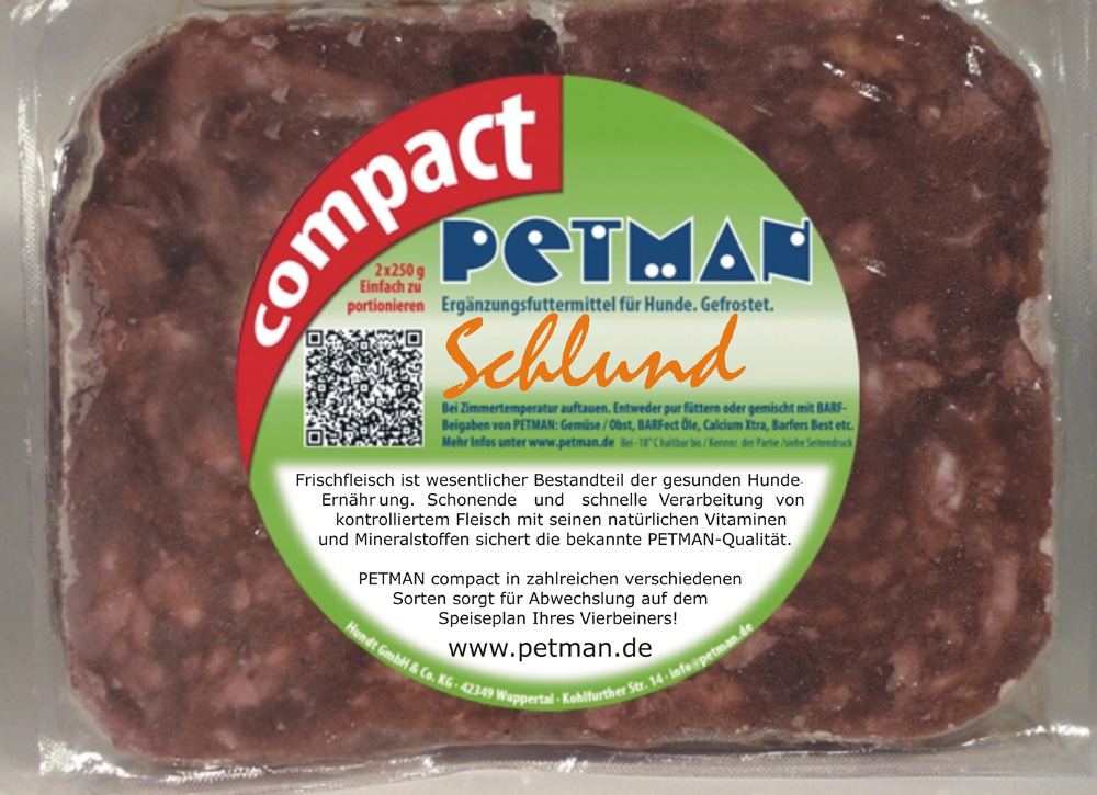 Zusammensetzung: Schlund (Speiseröhrenmuskelfleisch) vom Rind 97 %, Calciumcarbonat?