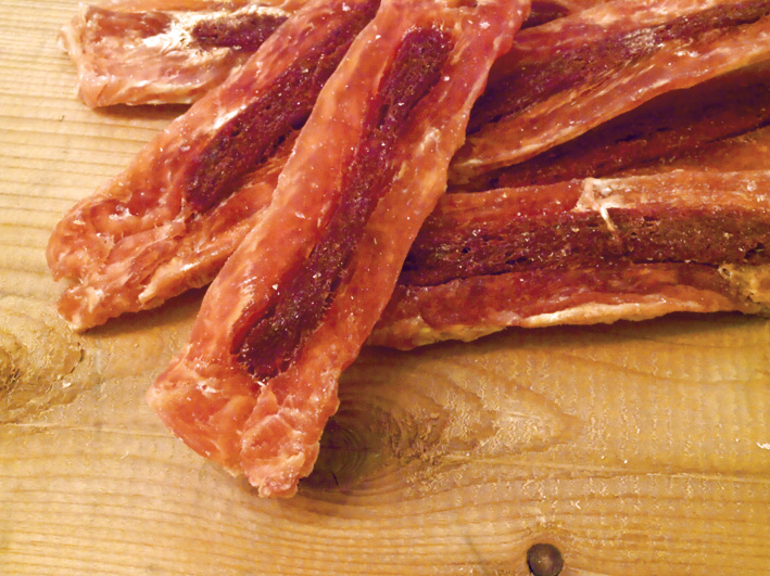 Rinder-Dörrfleisch 245050 Ein leicht verdaulicher Rinder-Snack, der erfreulicherweise beim Kauen gleichzeitig aktive Zahnpflege umsetzt. Protein 83,7%