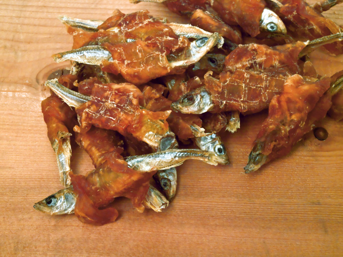 Hühnerbrustfilet mit Fisch 136139 Für die Gourmets unter den Hunden. Hochwertiges, luftgetrocknetes Hühnerbrustfilet in Kombination mit Fisch - eignetlich unwiderstehlich! Rohprotein 65%