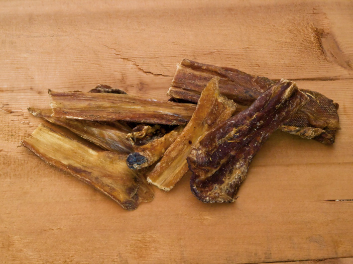 Getrocknete, handverlesene Schweinedärme. Auch für hyperallergene Hund geeignet. Splittern nicht. Rohprotein 54,87%